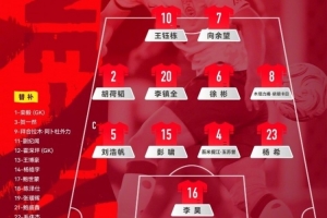 中国队官方给出的阵型依然是万年不变的442阵型:王钰栋和向余望搭档双前锋,胡荷韬和木塔力甫出任双边前卫。胡荷韬堪称左路全能攻守兼备,既能踢后卫也能踢边前卫。