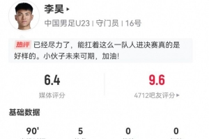 截至目前,李昊本场数据:5次扑救+丢4球 24次长传1次成功 获评6.4分的相关情况大致如此,后续仍需关注进一步消息。