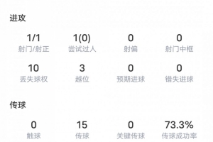 首发出战78分钟!向余望全场数据:1射1正,丢球权10次,越位3次