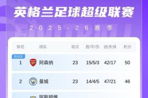 英超积分榜:阿森纳主场首败优势变4分,曼联超越红、蓝军升第四近期受到不少球迷关注,相关消息也在持续更新中,整体情况正在逐步明朗。