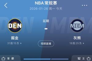 Shams在社媒表示:由于天气原因,今天在孟菲斯举行的掘金队与灰熊队的比赛已被推迟。