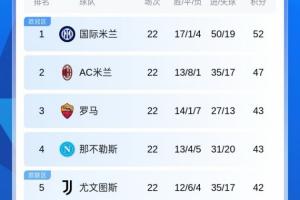 关于意甲积分榜:国米5分优势领跑!米兰近5轮3平仍第2 尤文紧追前4,当前阶段的情况已基本明朗。