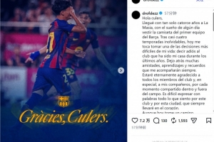 我十四岁那年来到拉玛西亚青训营,怀揣着有朝一日能穿上巴萨一线队球衣的梦想。在经历了近四个难忘的赛季后,今天我不得不做出人生中最艰难的决定之一,向过去几年如同家一般的俱乐部告别。我将留下许多珍贵的友谊、宝贵的经历和美好的回忆,它们将永远伴随着我。