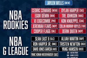 一年级:弗拉格(独行侠)、克尼佩尔(黄蜂)、埃奇库姆(76人)、科沃德(灰熊)、奎因(鹈鹕)、特雷·约翰逊(奇才)、迪伦·哈珀(马刺)、博伊尔斯(猛龙)、杰明(篮网)、费尔斯(鹈鹕);