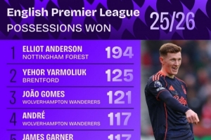 截至目前,本赛季英超夺得球权排名:安德森194次断层居首,索博、B费上榜的相关情况大致如此,后续仍需关注进一步消息。