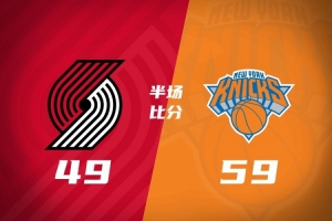 开拓者半场49-59落后尼克斯 杨瀚森未登场 夏普17分 布伦森19分