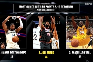 联盟合并以来40分10篮板场数榜:字母哥45场第1 恩比德第2鲨鱼第3近期受到不少球迷关注,相关消息也在持续更新中,整体情况正在逐步明朗。