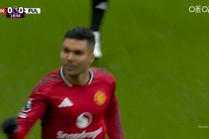 第19分钟卡塞米罗头球破门,曼联1-0领先富勒姆>>