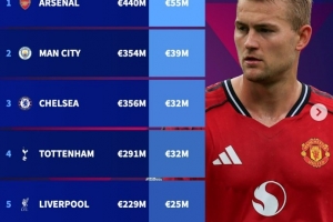 关于英超BIG6防线平均身价榜:阿森纳5500万欧居首,曼联2100万欧垫底,当前阶段的情况已基本明朗。