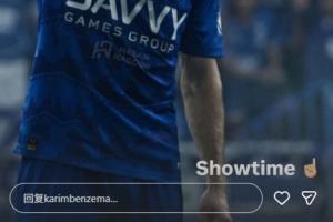 官宣后,本泽马更新社媒,晒出自己身穿新月球衣单手指天的图,配文“showtime(表演时间)☝️”。