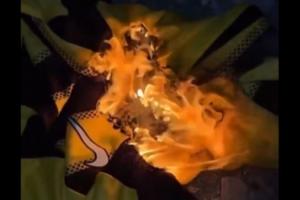 视频中,这名球迷将一件原本被裱起来挂在墙上的本泽马球衣取下,并且将其烧掉。