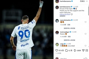 本泽马社媒晒出比赛照片,并写道:“为球队感到骄傲,感谢你们的支持与热情欢迎。”