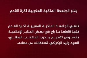摩洛哥足协写道:“摩洛哥皇家足球协会断然否认某些媒体报道的,关于国家队主教练雷格拉吉先生已递交辞呈的传闻。”