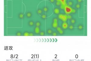 体育资讯2月7日讯 在本轮英超,曼联2-0击败热刺,以下为B费本场数据: