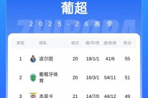 在明天凌晨,葡超积分榜前二就将展开直接对话,波尔图主场迎战葡体。