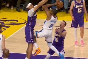 随着相关信息不断披露,看着都疼!杰伦威踢到海斯要害被吹进攻犯规 雷霆挑战失败的情况逐渐清晰。