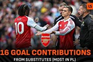 截至目前,阿森纳替补球员本赛季参与16球英超第一,曼城替补仅2球倒数第一的相关情况大致如此,后续仍需关注进一步消息。