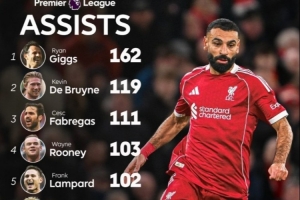 英超历史助攻榜:萨拉赫93次追平大卫·席尔瓦,并列第七现阶段能够确认的信息主要集中在以上内容。