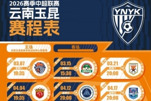 2026怡宝中超联赛云南玉昆赛程表近期受到不少球迷关注,相关消息也在持续更新中,整体情况正在逐步明朗。