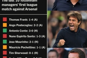 关于热刺近10位主帅北伦敦德比首战成绩:仅穆里尼奥、孔蒂取胜,当前阶段的情况已基本明朗。