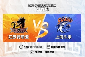 12月19日19:35,2025-26赛季CBA常规赛第三轮,江苏肯帝亚将坐镇主场丹阳市体育馆,迎战劲旅上海久事。