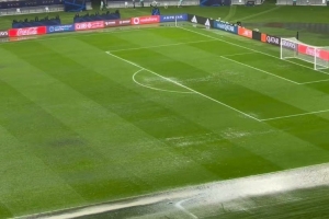 目前雨势已经减弱,但球场仍未完成排水处理,工作人员被召集准备场地,但尚未做出恢复比赛的决定。