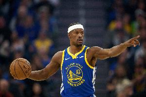 勇士球星巴特勒上半场比赛侵略性十足,他8投5中,罚球7中6,没有三分出手,得到16分1篮板1助攻1抢断。