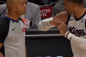 威少和裁判示意是阿夫迪亚肘击的自己 但裁判无动于衷